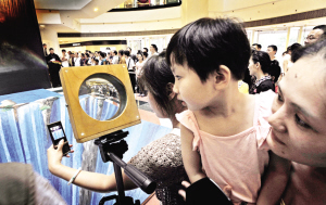 哪些位置看,視覺效果更好?據介紹,3D畫創作時的“視點”,也就是最佳觀賞點。在該點架設了一個“貓眼”,就像防盜門上“貓眼”的放大版。透過“貓眼”看這幅圖畫更加生動,甚至能讓人產生水汽蒸騰撲面的感覺。