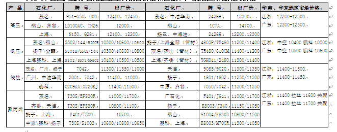 4月30日國內部分石化企業塑料銷售價格和江浙、廣東地區市場成交價格